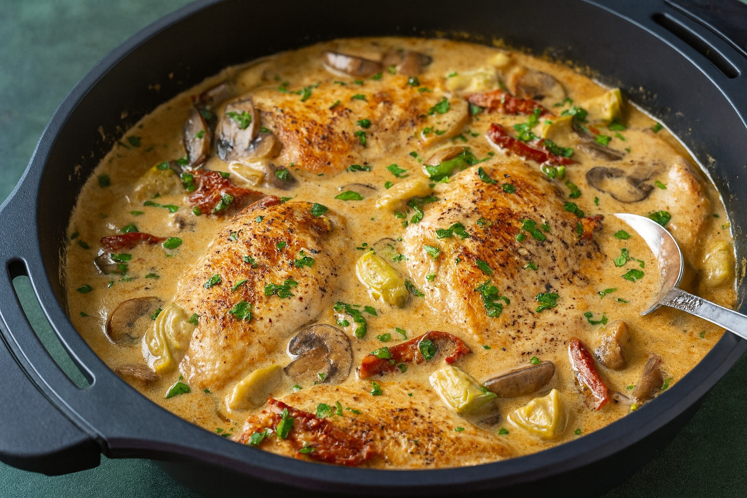 Artichoke and Sun-Dried Tomato Chicken is a flavorful and wholesome dish that combines tender chicken with the tangy taste of artichokes and the rich, slightly sweet flavor of sun-dried tomatoes. Perfect for weeknight dinners or special gatherings, this recipe brings a Mediterranean flair to your table.