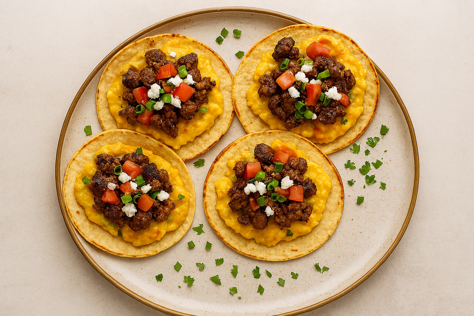 Breakfast Smashed Tacos are a vibrant and satisfying way to start the day, combining bold flavors with wholesome ingredients. Each taco features a crispy tortilla base layered with creamy smashed avocado, fluffy scrambled eggs, and a generous sprinkle of melted cheese. Fresh salsa adds a zesty kick, while a drizzle of spicy sauce ties everything together for a perfect balance of heat and tang. The textures are irresistible—crunchy, soft, and creamy in every bite—making these tacos both comforting and energizing. Ideal for busy mornings or weekend brunches, they deliver a delicious twist on traditional breakfast that’s as visually appealing as it is tasty.