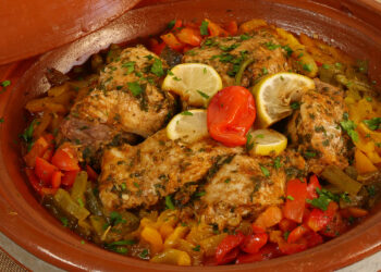 Read moreA modern tagine of fish and vegetables simmered in a sauce of tomatoes, coriander, and Chermoula Spice. It's full of flavor but doesn't need hours in the pot. Serve to a crowd at a celebration or as a dinner-party main course.