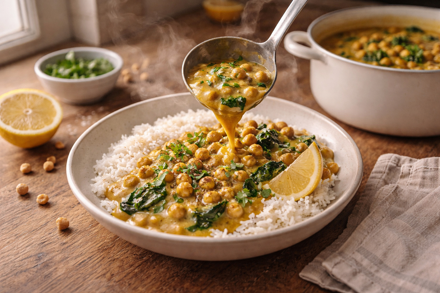 Tender chickpeas and wilted spinach give a comforting, slightly creamy texture.