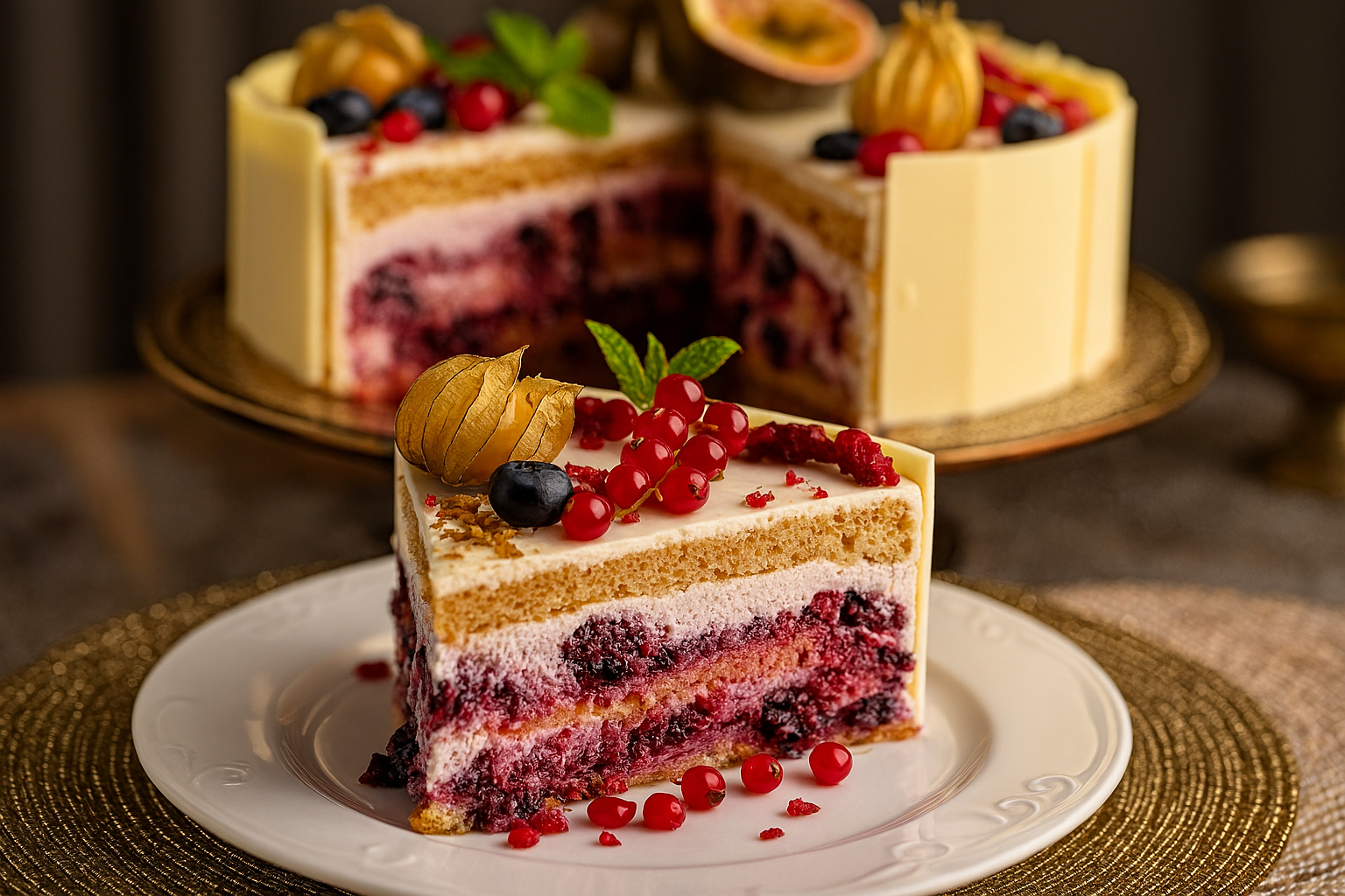 Fruitcake with Sugar Glaze is a classic rich and moist fruitcake topped with a glossy, sweet sugar icing that hardens to create a beautiful, fondant-like finish. The cake itself is typically made with an abundance of dried and candied fruits soaked in liqueur (such as rum or orange liqueur), mixed with nuts, spices, and a buttery batter.