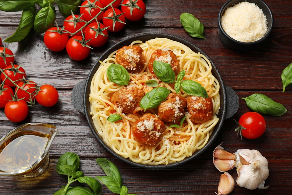 - Transfer meatballs to the baking dish with pasta mixture, gently nestling meatballs into the pasta; set aside. Reduce oven temperature to 375 degrees F (190 degrees C).