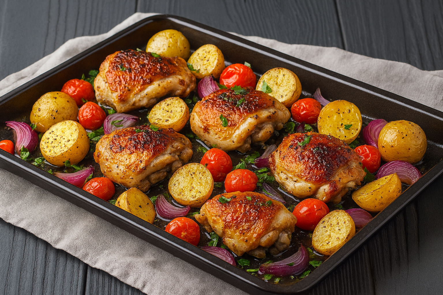 The Mediterranean Chicken Sheet Pan is a flavorful and wholesome one-pan meal featuring juicy chicken and colorful vegetables roasted with olive oil, garlic, lemon, and herbs. It’s quick to prepare, ready in under an hour, and requires minimal cleanup, making it perfect for busy weeknights or casual gatherings. This versatile dish can be customized with different veggies, olives, or feta and pairs well with pita, salad, or couscous. Plus, leftovers are great for meal prep, adding delicious flavor to wraps, salads, or grain bowls the next day.