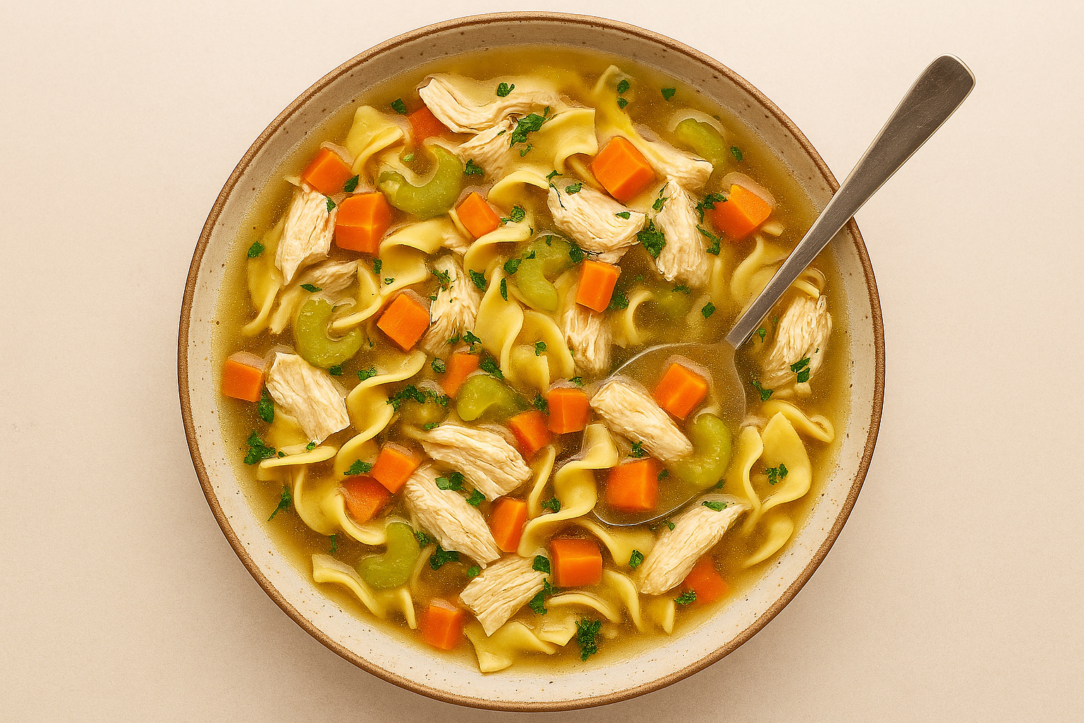 Soft egg noodles soak up the savory flavors, making every spoonful soothing and satisfying.