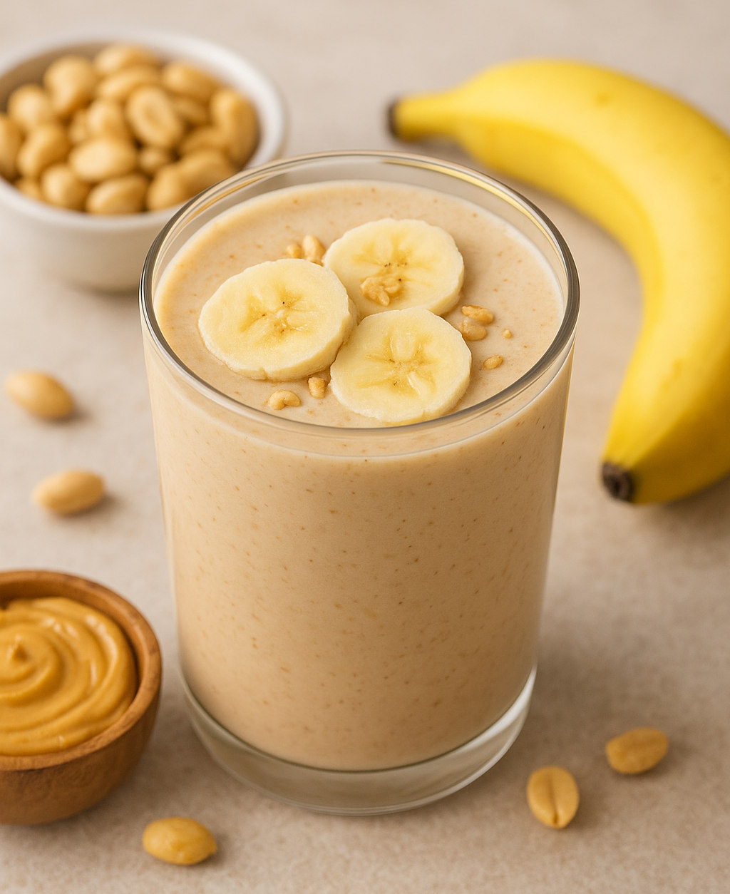 A creamy, protein-packed smoothie that perfectly blends the natural sweetness of ripe bananas with the rich, nutty flavor of peanut butter. This energizing drink is smooth, filling, and ideal for breakfast or a post-workout boost. Topped with banana slices and a sprinkle of crushed peanuts, it’s both nutritious and indulgent keeping you refreshed and satisfied in every sip.