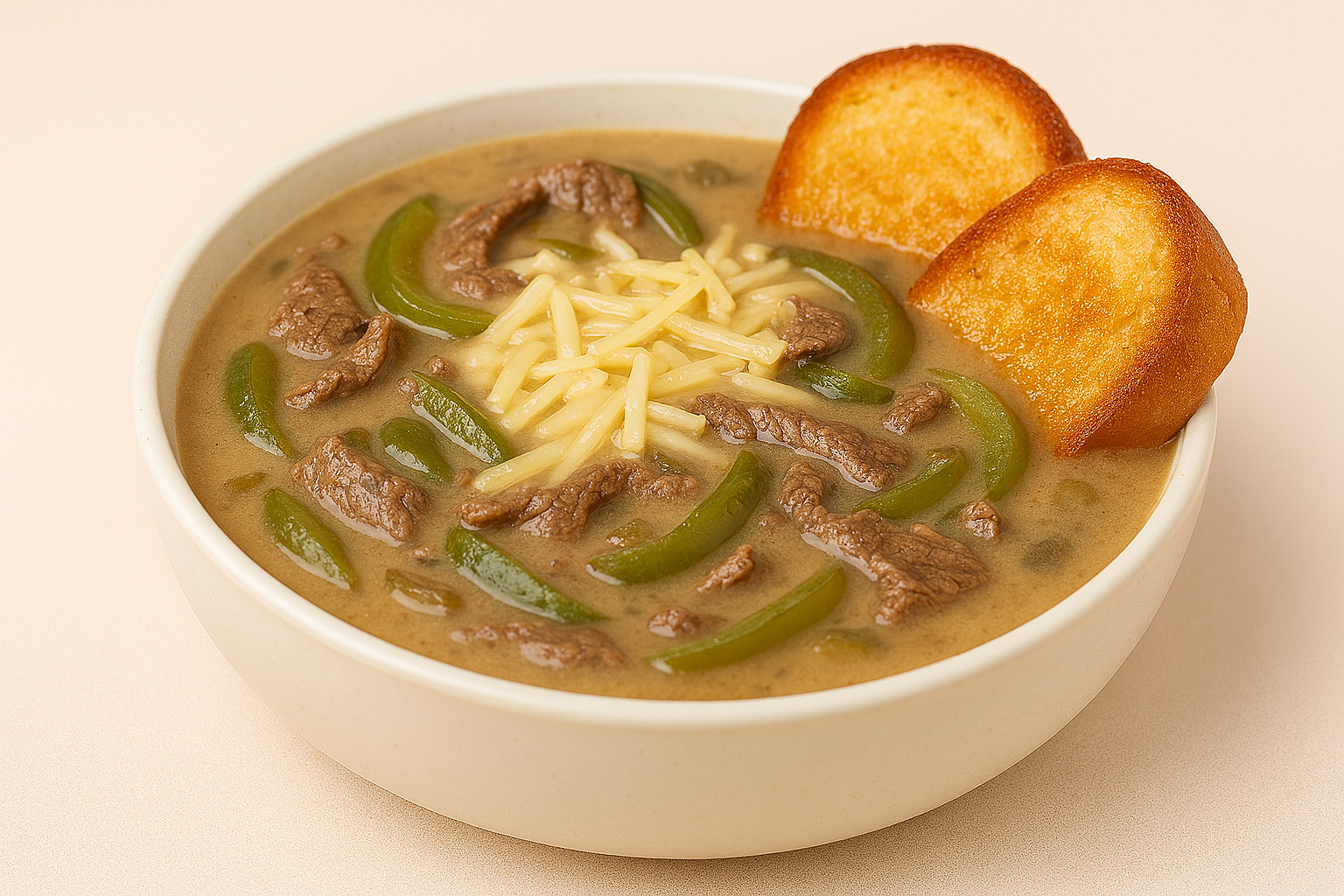 Philly Cheese Steak Soup takes all the iconic flavors of the classic sandwich and transforms them into a warm, comforting bowl of goodness. Tender slices of beef simmer with sautéed onions, bell peppers, and mushrooms to create a rich, savory base. A creamy, cheesy broth brings everything together, delivering that beloved melty, indulgent Philly cheesesteak taste. This soup is hearty enough for a full meal, perfect for chilly evenings or cozy family dinners. Each spoonful offers a blend of creamy cheese, flavorful beef, and aromatic veggies. Serve it with toasted bread or croutons to complete the experience.